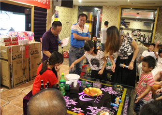 中秋到,祝團圓,2015年9月24日晚,我集團部分直屬部門相聚一起慶祝傳統中秋佳節,并進行了閩南特色文化活動——博餅。 晚會開始進行的是宴會,會上集團領導親自敬酒,祝大家節日快樂,身體健康,大家積極回應,其樂融融。酒足飯飽之后,開始重頭戲----擲骰子博餅競逐「狀元」銜頭,每圍按擲得「狀元」、「榜眼」、「探花」、「四進」、「舉人」及「秀才」,對應豐富獎品。全場歡聲笑語,氣氛熱烈。