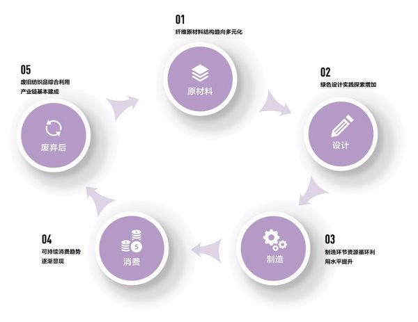 在日益高漲的可持續發展呼聲和行業亟需新發展機遇的雙重驅動下,時尚產業正在重新思考紡織服裝制造、消費和處理的方式。循環時尚是不同利益相關方為實現產業可持續發展正在積極推進的產業系統解決方案——按照循環經濟的原則,讓纖維、紡織品和服裝在設計、生產、使用和循環的過程中發揮最大價值,減少資源的消耗和廢棄物的產生,重塑更負責任、更具韌性的產業未來。 中國自“十一五”期間開始大力推動循環經濟。在國家循環發展戰略的引領下,中國紡織服裝行業循環轉型取得了階段性進展,并初步形成了自身循環發展的基本特征。原材料結構優化、制造環節資源利用率提升、廢舊紡織品回收再利用是行業循環實踐的三大重點領域。