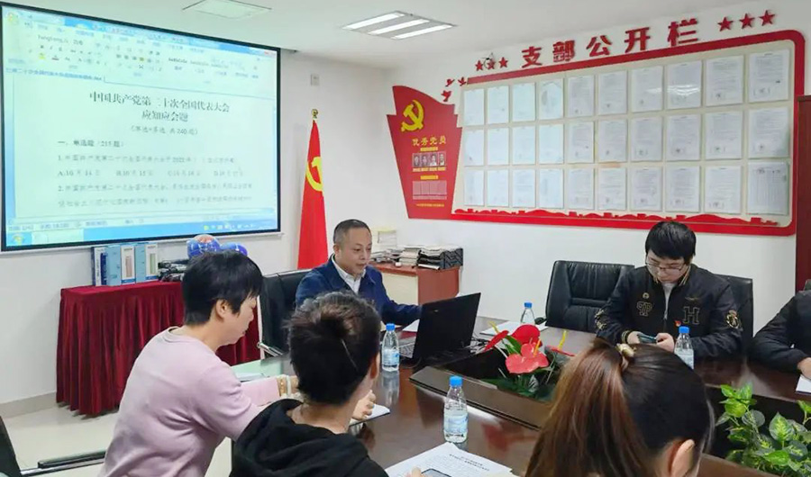 為認真學習貫徹黨的二十大精神,檢驗和鞏固理論學習成果,會上開展了黨的二十大報告應知應會知識測試,引導黨員以考促學、以學促用、知行合一。支部黨員積極搶答,氣氛活躍,推動學習貫徹黨的二十大精神往深走、往實里走。