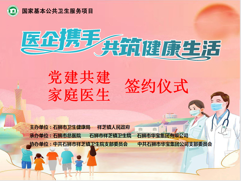 重要會(huì)議解讀 2023年5月12日,石獅市華寶集團(tuán)有限公司與祥芝鎮(zhèn)衛(wèi)生院舉行了《石獅市祥芝鎮(zhèn)衛(wèi)生院家庭醫(yī)生簽約協(xié)議》和《黨建共建協(xié)議書》簽約儀式。華寶集團(tuán)副總經(jīng)理吳世金和祥芝鎮(zhèn)衛(wèi)生院副院長王明云出席儀式并簽約。華寶集團(tuán)黨支部書記、工會(huì)主席師體偉和祥芝鎮(zhèn)衛(wèi)生副院長王明云分別發(fā)表講話。
