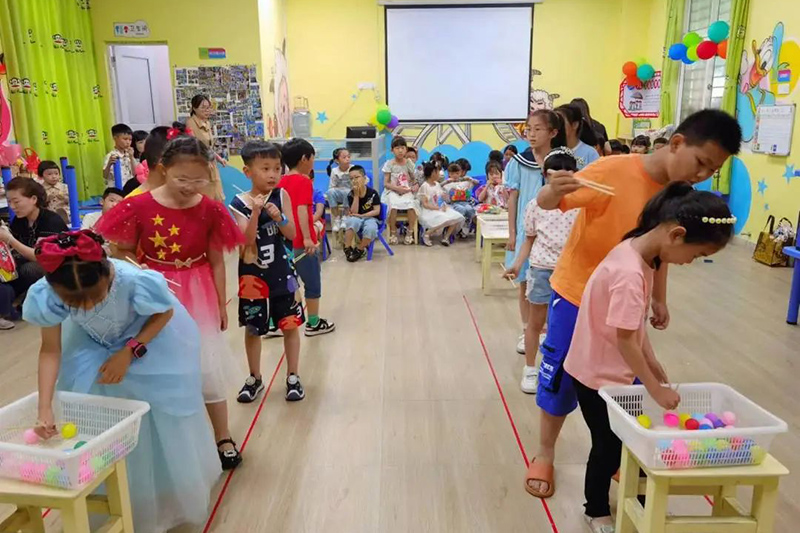 當天,“四點半活動中心”也開展了各種趣味的游戲,包括筷子夾球、揪尾巴、套禮物等活動。在教室里,所有的小朋友們一起歡快地玩游戲、比默契,在一片片歡聲笑語中度過了輕松愉快的游戲時光。