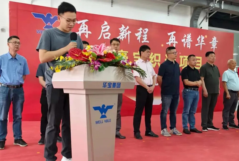 “織機(jī)2000臺,同時引入自動掛紗、自動落布,可以極大地提高生產(chǎn)效率和提供更優(yōu)質(zhì)的產(chǎn)品,在實現(xiàn)智能化管理的同時,爭取成為行業(yè)智能化的標(biāo)桿。”豪寶織造廠總經(jīng)理助理劉永豪在致辭中說道。豪寶織造廠的發(fā)展是華寶集團(tuán)實現(xiàn)產(chǎn)業(yè)鏈升級,提高核心競爭力的關(guān)鍵所在,他表明將在未來與各位同事攜手并進(jìn),共同奮斗,創(chuàng)造華寶集團(tuán)更加輝煌的明天!