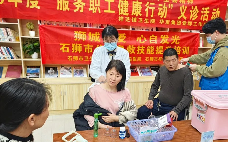 下午15時起,職工們陸續來到義診區域。祥芝鎮衛生院專業醫護團隊耐心接診,為職工提供中醫拔罐、艾灸調理等項目,并開展職工專項篩查服務和醫療科普。許多職工表示:“平時工作忙,很少專門去醫院檢查,這樣的活動太貼心了!”