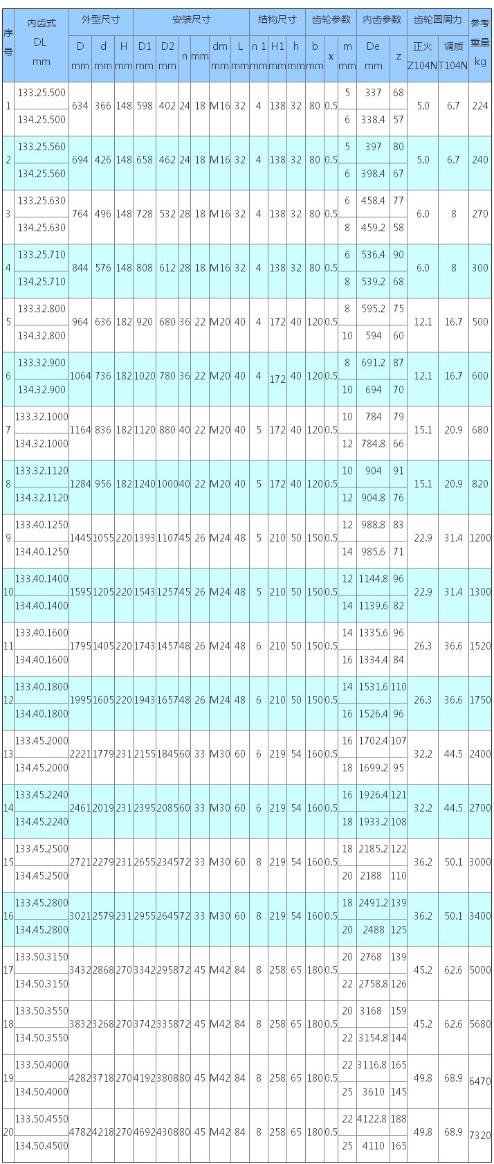 3、表內齒輪圓周力為最大圓周力,額定圓周力取其1/2。