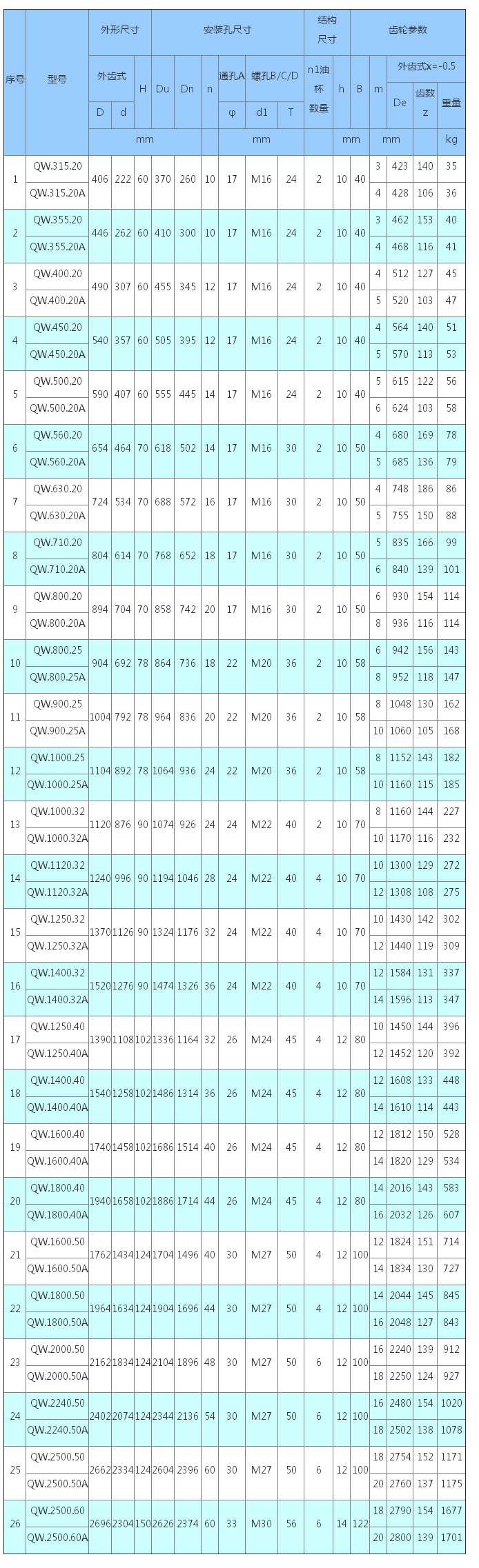 3、表內齒輪圓周力為最大圓周力,額定圓周力取其1/2。