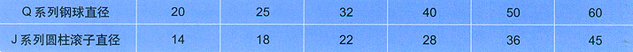 回轉(zhuǎn)支承和單排球式回轉(zhuǎn)支承的滾動(dòng)體直徑不同,對(duì)應(yīng)如下:(JB/T2300-1999標(biāo)準(zhǔn)回轉(zhuǎn)支承編號(hào)方法)